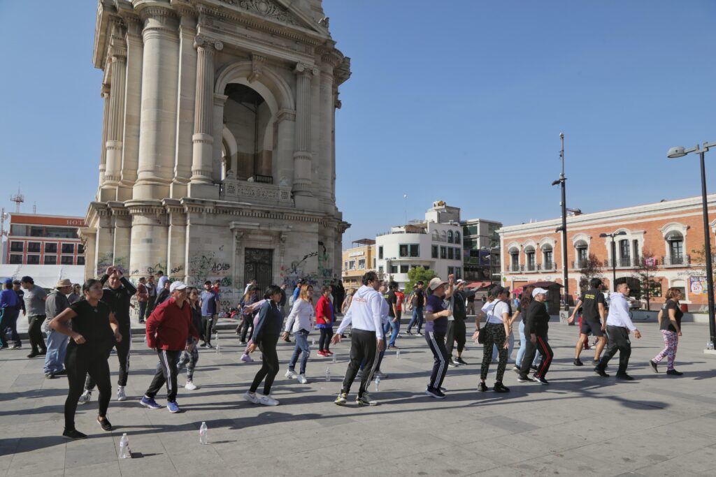 En el marco de la 8va actividad deportiva, la Plaza Independencia albergó más de 100 participantes, todos estos miembros de la ciudadanía se sumaron a esta iniciativa que busca recuperar las tradiciones dancísticas.