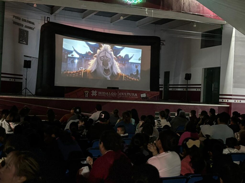 Con gran entusiasmo y un ambiente festivo, se llevó a cabo la jornada de Cine Comunitario en el Foro Cultural Benito Juárez de Tlaxcoapan, donde familias enteras disfrutaron de una tarde dedicada a la cultura, la convivencia y la diversión.