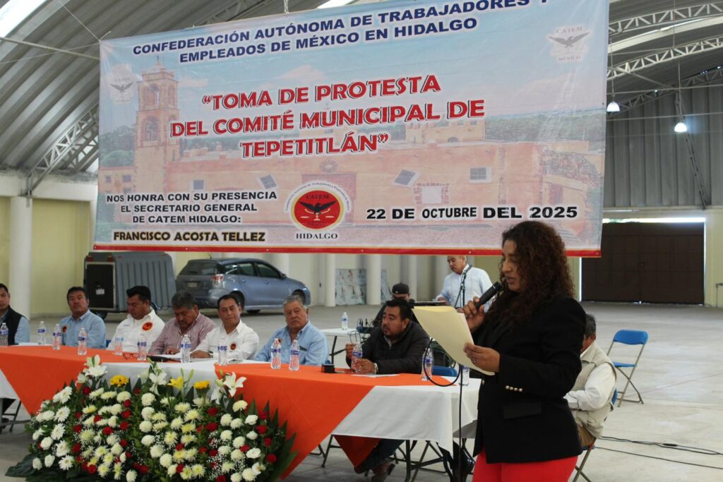 En un acto que reafirma el compromiso con el fortalecimiento del tejido laboral y social del municipio, se llevó a cabo la Toma de Protesta del Comité Municipal de Tepetitlán de la Confederación Autónoma de Trabajadores y Empleados de México (CATEM), evento que contó con la presencia de la presidenta municipal Lic. Ana Elsa Castillo Cea.