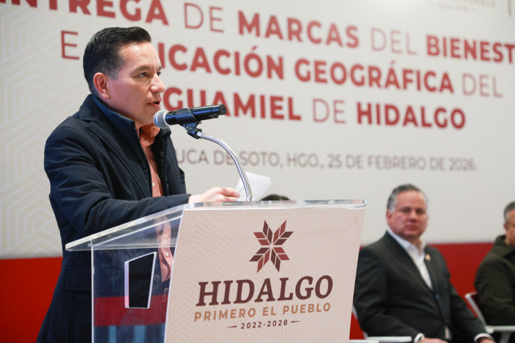Con el propósito de salvaguardar el patrimonio productivo y comercial de Hidalgo, el gobernador Julio Menchaca Salazar recibió la declaratoria de protección de la Indicación Geográfica (IG) del Aguamiel de la Región Aguamielera del estado por parte del Instituto Mexicano de la Propiedad Industrial (IMPI) y acompañó la entrega de Marcas del Bienestar a personas emprendedoras y empresarias hidalguenses.