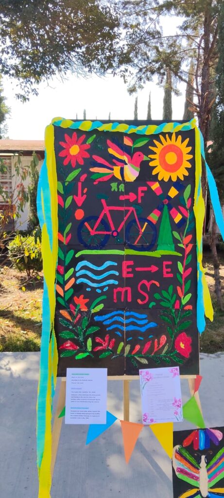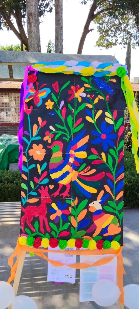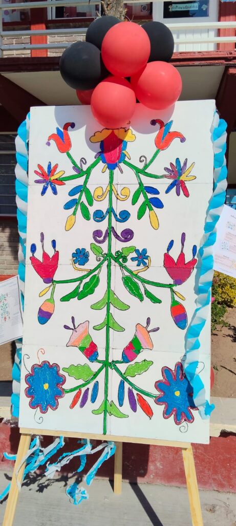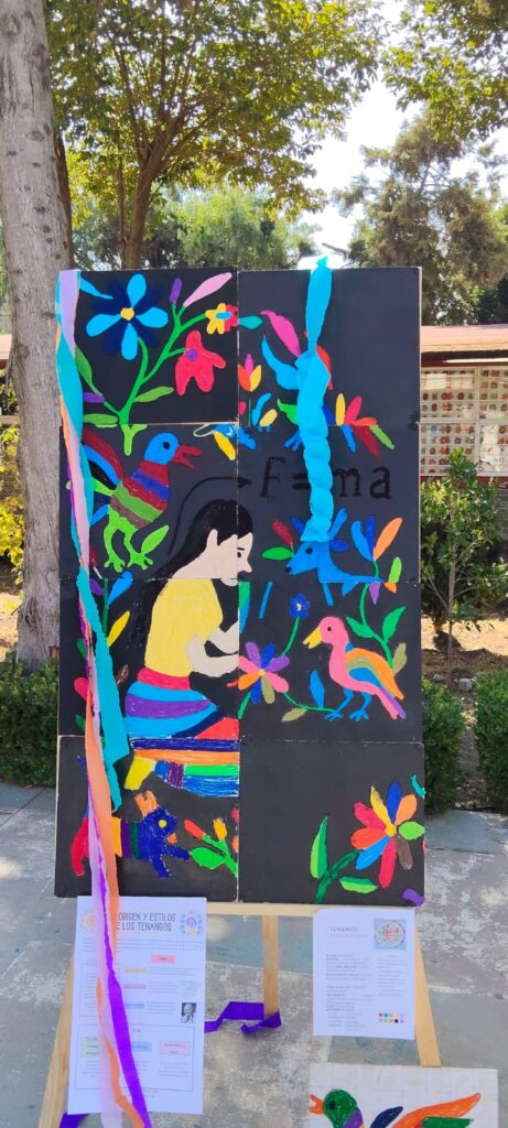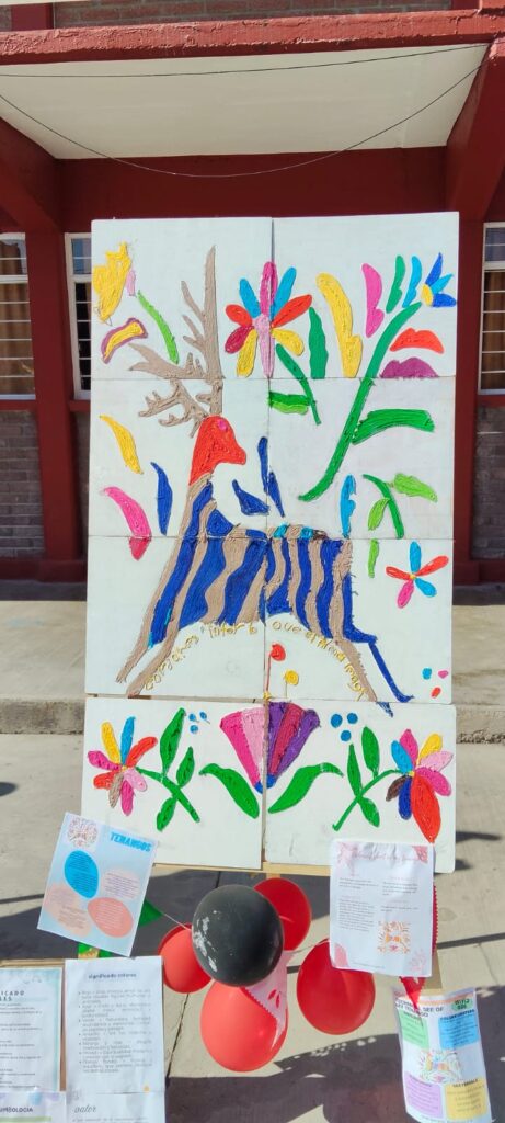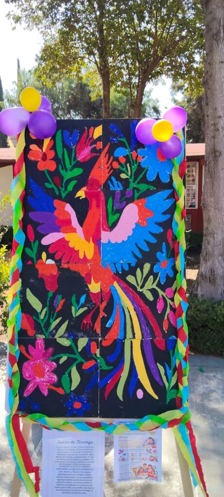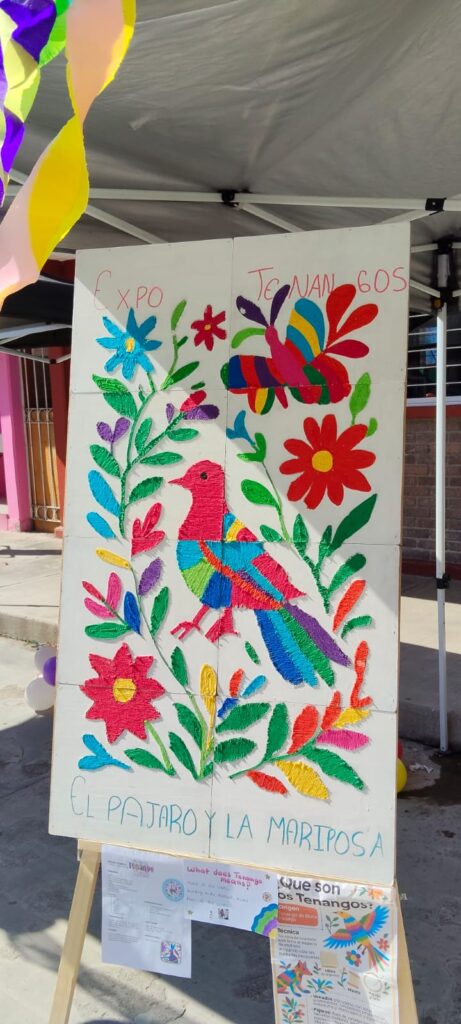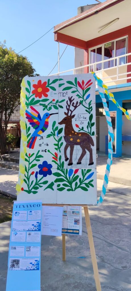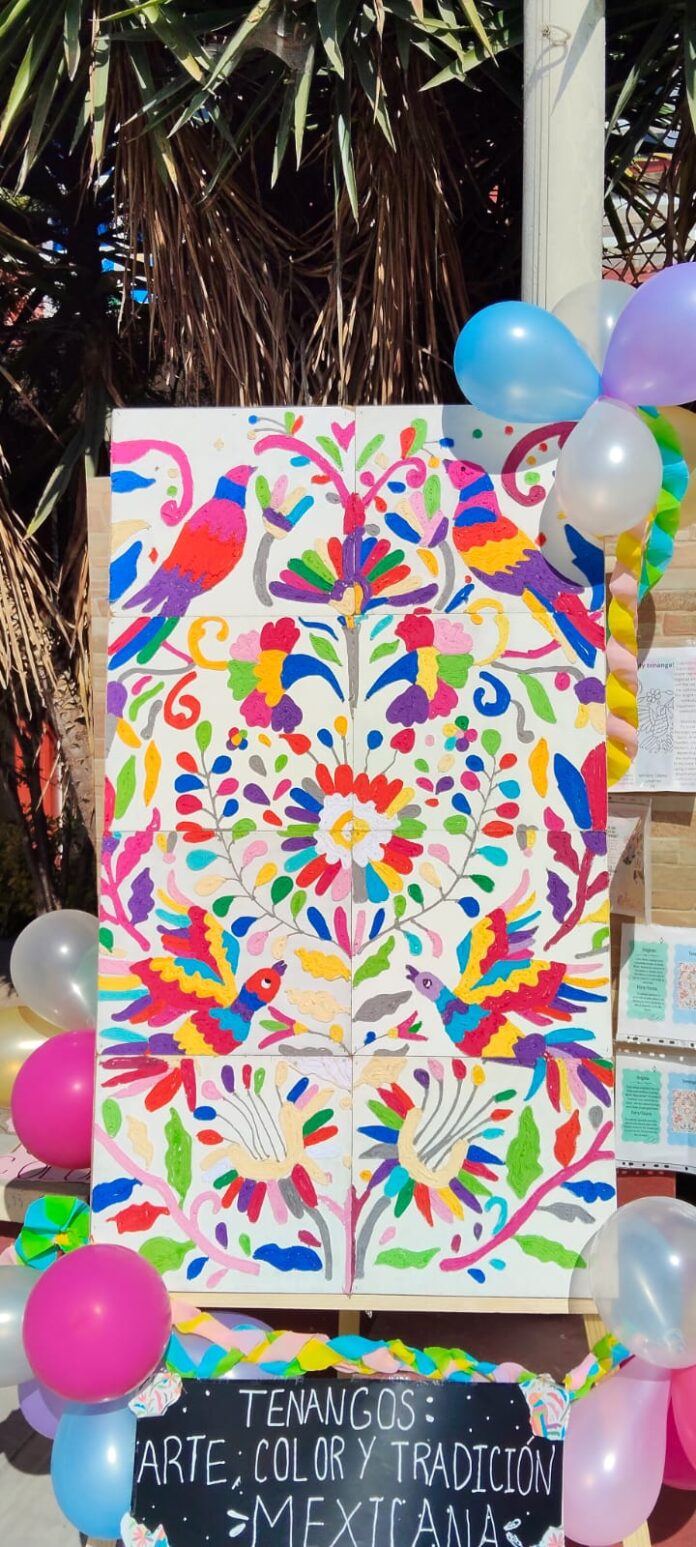 Las exhibiciones se instalaron en los patios 1 y 3, donde se presentó una galería artística, una muestra de Tenangos y diversos productos elaborados por el alumnado. Entre ellos destacaron diseños aplicados a cuerpos geométricos —como cilindros, prismas y pirámides—, mosaicos inspirados en Tenangos y artículos utilitarios como porta servilletas, todos integrando los colores, figuras y simbolismos característicos de esta expresión cultural.