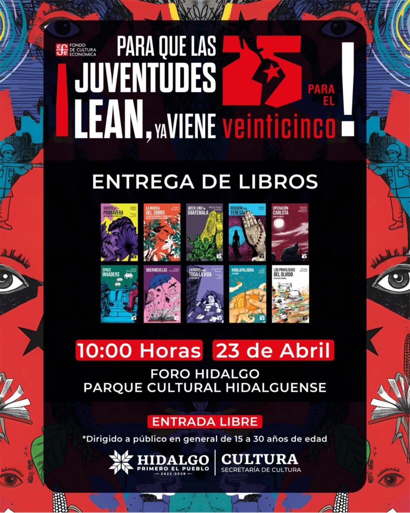 En el marco del Día Mundial del Libro, la Secretaría de Cultura de Hidalgo llevó a cabo la entrega de más de mil ejemplares de la colección “25 para el 25” del Fondo de Cultura Económica, a fin de acercar obras literarias a jóvenes de distintos municipios de la entidad.