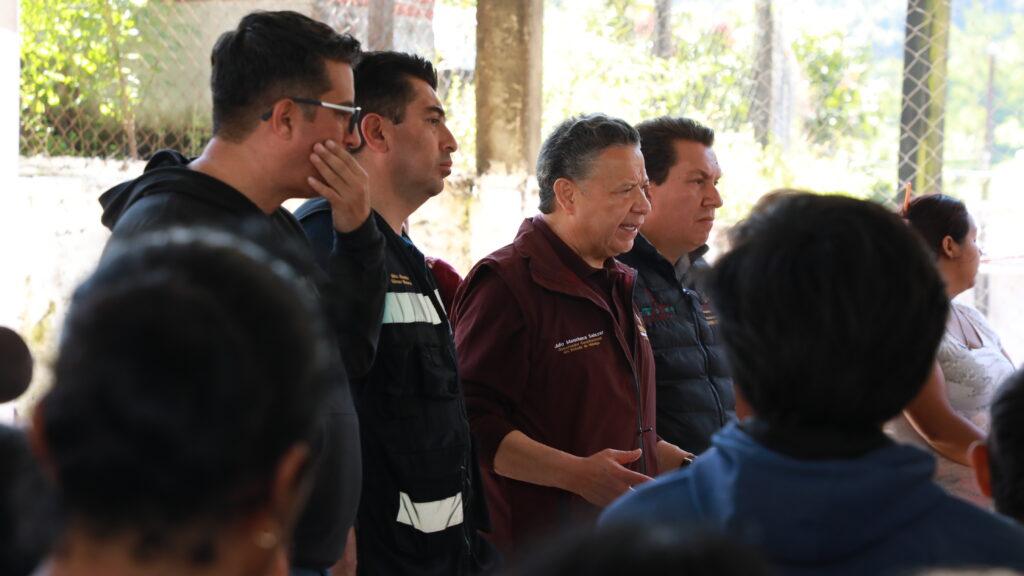 “La presidenta me encargó comunicarles a ustedes que no están solos, que no están solas, que el gobierno federal, que el gobierno estatal, que el gobierno municipal estamos cercanos. Ahorita lo fundamental es atender la emergencia […] está la maquinaria limpiando los caminos, haciendo llegar las brigadas de rescate y haciendo llegar víveres y medicamentos. Quiero transmitirles ese compromiso y ese esfuerzo”, expresó Menchaca Salazar.
