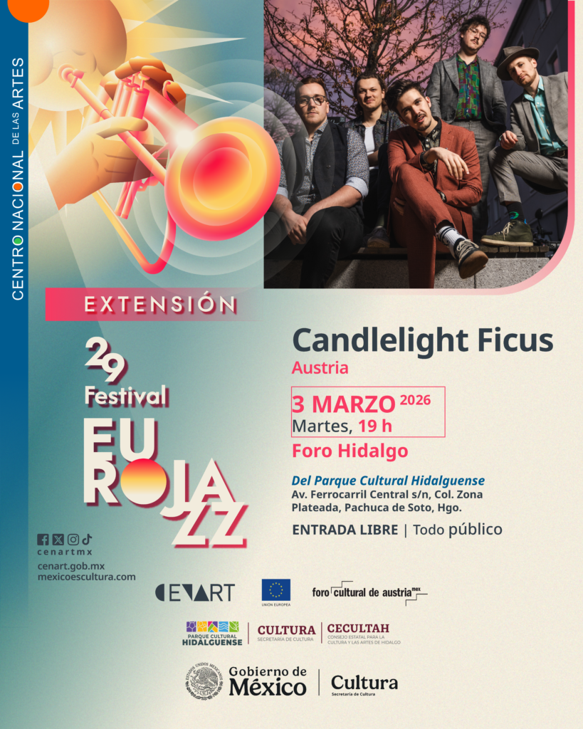 La secretaria de Cultura, Neyda Naranjo Baltazar, destaca que Hidalgo fue el primer estado en contar con una extensión del Festival Eurojazz en el invierno de 2024, colaboración con el Cenart que ahora se consolida, a fin de permitir que el público hidalguense disfrute nuevamente de propuestas internacionales que fortalecen el intercambio cultural y acercan este género musical a nuevas audiencias.