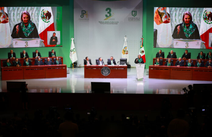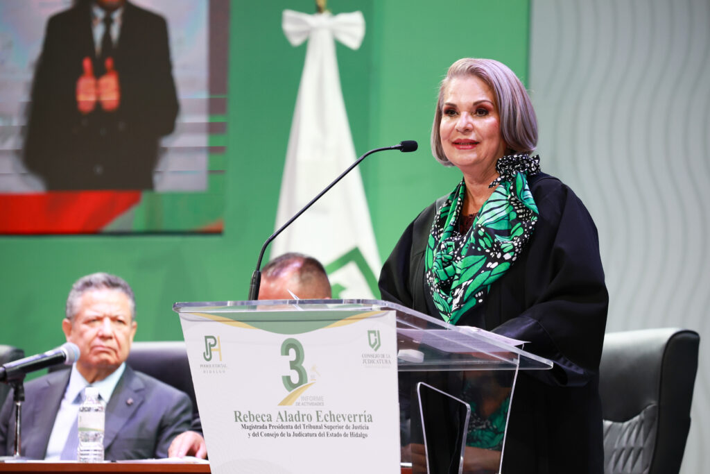 Al iniciar su mensaje, Aladro Echeverría manifestó: “Representar al Poder Judicial del Estado de Hidalgo es un honor que exige carácter, visión y un compromiso absoluto con la transparencia, la excelencia y el servicio a la ciudadanía. Liderar esta institución como mujer tiene un significado especial: abrir camino y demostrar que el liderazgo femenino en la vida pública sigue siendo sinónimo de responsabilidad, innovación y justicia”, expuso.