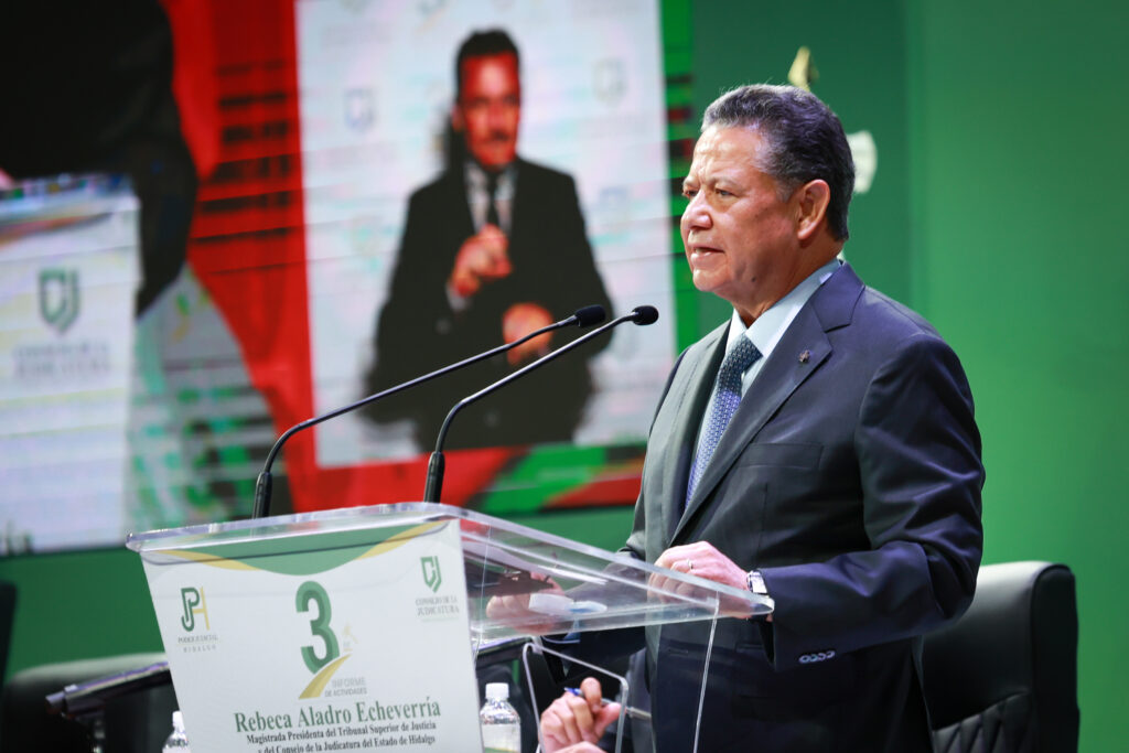 “En Hidalgo el Poder Judicial está respondiendo al reclamo de la población de justicia”, reconoció el gobernador Julio Menchaca Salazar al acompañar a la magistrada presidenta del Tribunal Superior de Justicia del Estado de Hidalgo y del Consejo de la Judicatura, Rebeca Aladro Echeverría, en su Tercer Informe de Actividades.