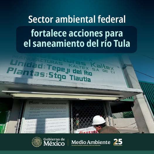 Durante 2025, la Procuraduría Federal de Protección al Ambiente (Profepa) y la Comisión Nacional del Agua (Conagua) realizaron 65 visitas de inspección a industrias ubicadas en la zona alta del río Tula, en los municipios de Jilotepec, Soyaniquilpan, Tula de Allende, Tepeji del Río y Atitalaquia, en el estado de Hidalgo, así como Cuautitlán Izcalli, Nicolás Romero, Tultitlán, Tepotzotlán y Teoloyucan, en el Estado de México.