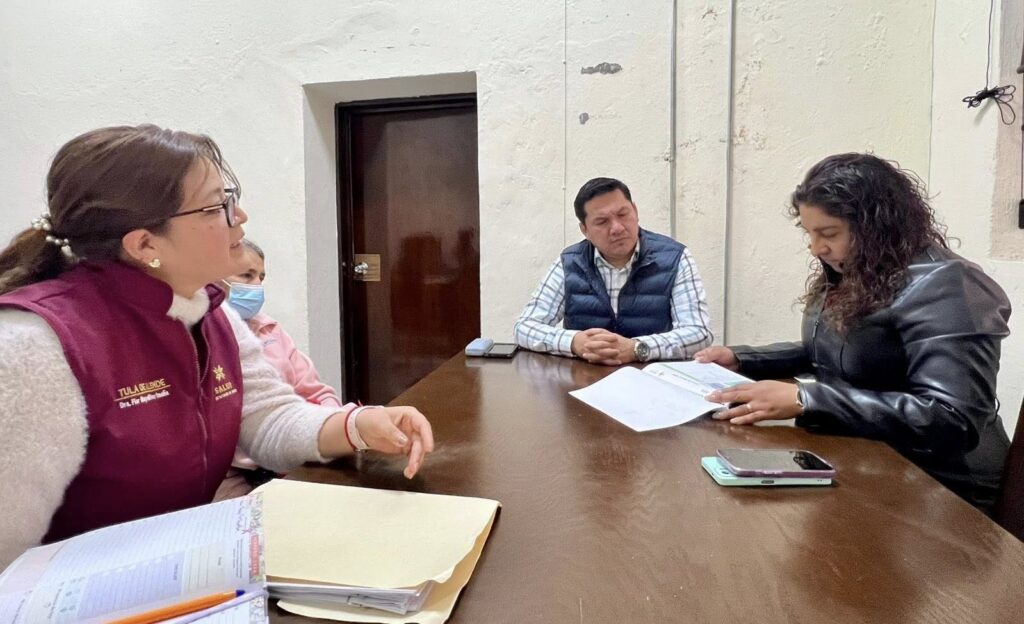 Como primera acción de este nuevo esquema de trabajo, la alcaldesa estableció una mesa de colaboración con la Jurisdicción Sanitaria XIV Tula, representada por su titular, el Dr. Miguel Ángel Arellano Falcón. El objetivo del encuentro fue articular esfuerzos para garantizar el acceso efectivo a servicios médicos y fortalecer la infraestructura sanitaria local, áreas que habían carecido de atención directa en periodos previos.