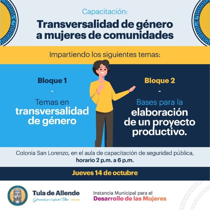 El primero de ellos se hablará sobre el teme “Transversalidad de género a mujeres de comunidades” y, el segundo bloque, “Bases para la elaboración de un proyecto productivo”, impartido por la licenciada Jessica Cruz Noguez.